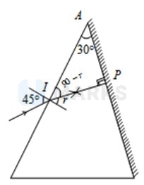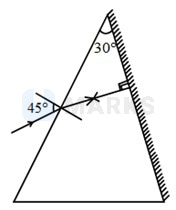 The face of a prism of refracting angle is silvered. A ray is incident on face at an angle of as shown in figure. The refracted ray undergoes reflection at face and retraces its path. The refractive index of the prism is