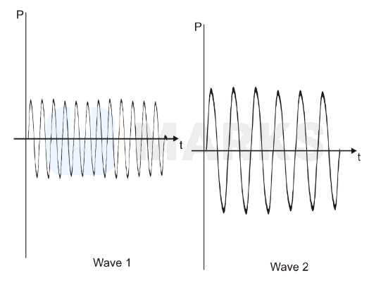 The figure below shows pressure variation in two different sound waves in air with time at a given position. Both the figures are drawn to the same scale.