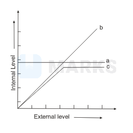 In graph, the line 'a' represents regulator, line 'b' represent conformer and line 'c' represent partial regulator. Organism that are able to maintain homeostasis by physiological means that ensures constant body temperature are called regulators. Organism that are not able to maintain a constant internal temperature are called conformers.