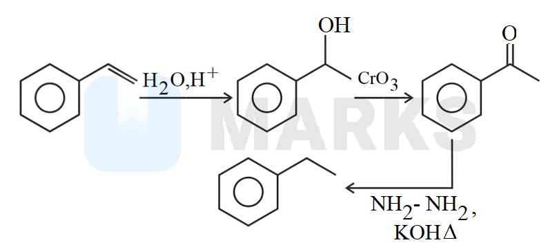 During the reaction, first addition of water takes place according to Markownikoff's rule, alcohol is formed, acts as an oxidising agents which converts alcohol into ketone, then Wolf Kishner reduction occurs.