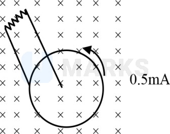 The following figure shows a conducting disc rotating about its axis in a perpendicular magnetic field . The resistor of resistance is connected between the centre and the rim. The current in the resistor is (The radius of the disc is , angular speed and )