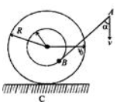 The free end of a thread wound on a bobbin is passed round a nail A hammered into the wall. The thread is pulled at a constant velocity. Assuming pure rolling of bobbin, find the velocity $v_0 \mid$ of the centre of the bobbin at the instant when the thread forms an angle a with the vertical.