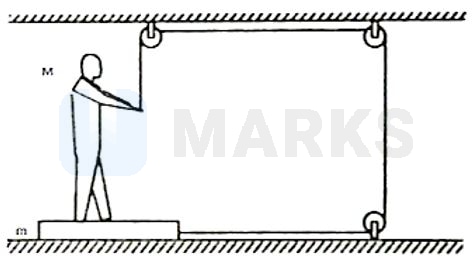The friction coefficient between the board and the floor shown in diagram is . Find the maximum force that the man can exert on the rope, so that the board does not slip on the floor.