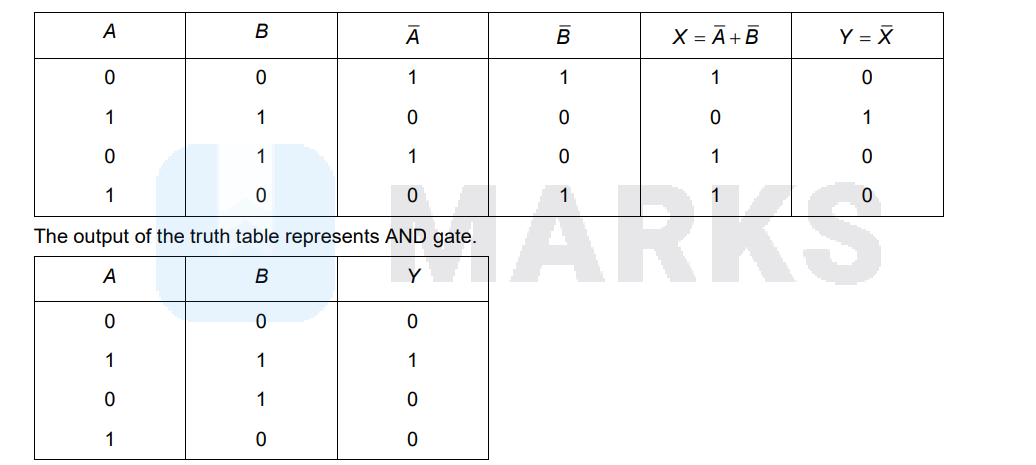 $\begin{aligned} & Y=\overline{\bar{A}}+\overline{\bar{B}} \\ & Y=\overline{\bar{A}} \cdot \overline{\bar{B}}=A B\end{aligned}$