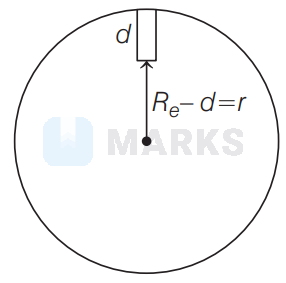 $g^{\prime}=g\left(1-\frac{d}{R_e}\right)=g\left(\frac{R_e-d}{R_e}\right)=\frac{g r}{R_e}$