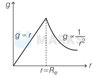 $\Rightarrow g^{\prime} \propto r($ where, $r=$ distance from centre of earth $)$