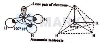 The H-N-H bond angle in $\mathrm{NH}_{3}$ molecule is