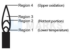 The hottest region of the Bunsen flame shown in the figure is the region . The hottest part of the Bunsen flame is present on the one third height from the bottom of the flame.