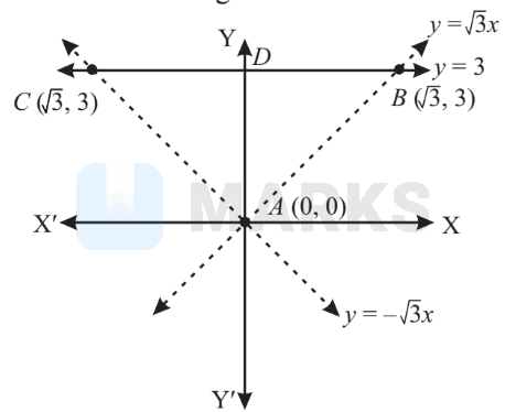 The triangle formed by the lines $y=\sqrt{3} x, y=-\sqrt{3} x$ and $y=3$ is shown in the figure.