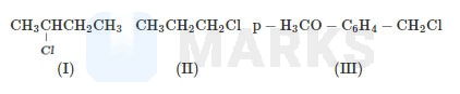 In (III), the carbocation generated is stabilised due to resonance. Hence, (III) is most reactive towards reaction.