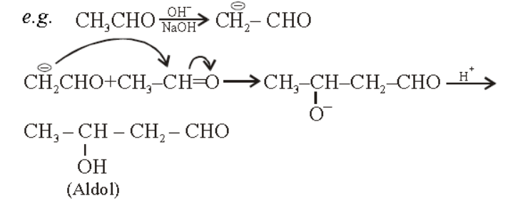 Aldol condensation : when a carbonyl compound containing $\alpha$-hydrogen is treated with a base, first of all carbanion is formed.