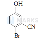 Cyano group has the highest priority therefore, parent name must be benzonitrile. $\mathrm{Br}$ occurs at 2-position, and hydroxyl at 3-position, hence clockwise numbering will be the correct one.