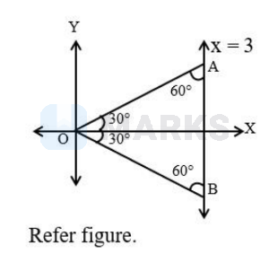 $\therefore$ Equation of $\mathrm{OA}$ is $\mathrm{y}=\frac{1}{\sqrt{3}} \mathrm{x}$ and equation of $\mathrm{OB}$ is $\mathrm{y}=\frac{1}{\sqrt{3}} \mathrm{x}$ Hence required equation is