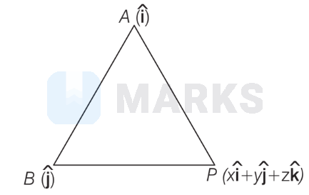 Let point $P(\mathbf{r})$ is $x \hat{\mathbf{i}}+y \hat{\mathbf{j}}+z \hat{\mathbf{k}}$ and $A(\hat{\mathbf{i}})$ and $B(\hat{\mathbf{j}})$