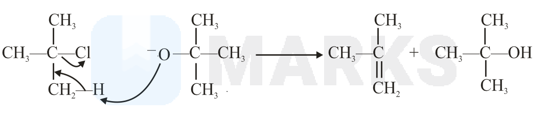 is a very strong base and a weak nucleophile due to its bulkiness. So it will give elimination reaction as follows.