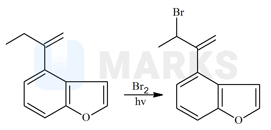 In presence of Br2,hv allylic bromination occurs as shown above in the reaction.
