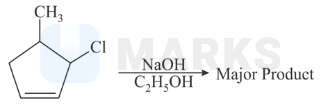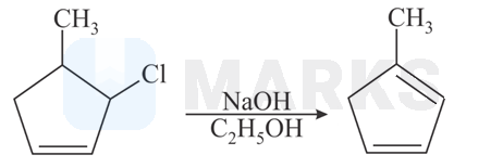 is alcoholic which is used for dehydrohalogenation of alkenes. This beta elimination is anti-elimination and Saytzeff alkene (more stable) is major product. In the given reaction, more stable conjugated alkene is formed as major product.
