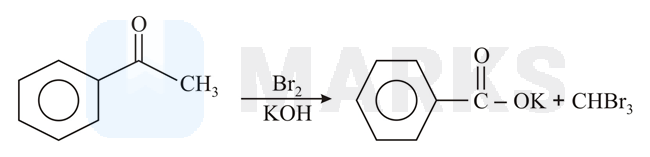 It is Haloform reaction. The haloform reaction is the reaction of a methyl ketone with chlorine, bromine, or iodine in the presence of hydroxide ions to give a carboxylate ion and a haloform.