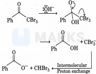 nucleophile attacks carbonyl carbon, resulting in the leaving of .