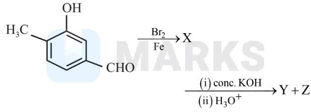 The major products Y and Z in the following reactions are