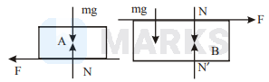 \mathrm{a}_{\mathrm{A}, \mathrm{B}} &=\mathrm{a}_{\mathrm{A}}-\mathrm{a}_{\mathrm{B}}=-\frac{\mathrm{F}}{\mathrm{m}}-\frac{\mathrm{F}}{\mathrm{M}} \\