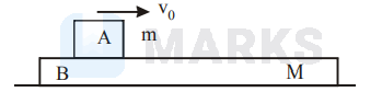 The masses of blocks $\mathrm{A}$ and $\mathrm{B}$ are $\mathrm{m}$ and $\mathrm{M}$ respectively. Between $\mathrm{A}$ and $\mathrm{B}$, there is a constant frictional force $\mathrm{F}$ and $\mathrm{B}$ can slide on a smooth horizontal surface. A is set in motion with velocity while $\mathrm{B}$ is at rest. What is the distance moved by A relative to B before they move with the same velocity?