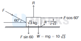 As we know that, force of friction, \(f=\mu R\) From the diagram,