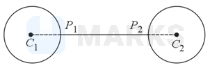 The minimum distance between any two points and while considering point on one circle and point on the other circle for the given circles' equations