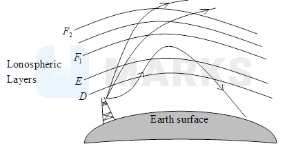Long-distance communication can be achieved by ionosphere reflection of radio waves back towards the earth as shown in Fig. This mode of propagation is called skywave propagation.