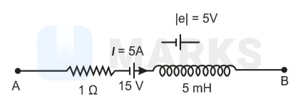 The network shown in the figure is part of a complete circuit. If at a certain instant the current is and is decreasing at a rate of , then the value of is
