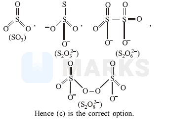 The number of $\mathrm{S}-\mathrm{S}$ bonds in $\mathrm{SO}_3, \mathrm{~S}_2 \mathrm{O}_3^{2-}$ $\mathrm{S}_2 \mathrm{O}_6^{2-}$ and $\mathrm{S}_2 \mathrm{O}_8^{2-}$ respectively are