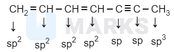 The carbon atom which has the one double bond and two single bond has the hybridisation of . The carbon atom which has the triple bond and one single bond has the hybridisation.