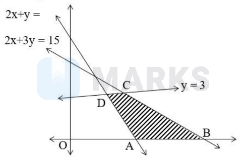 We have lines $2 x+y=7,2 x+3 y=15, y=3$ Refer figure