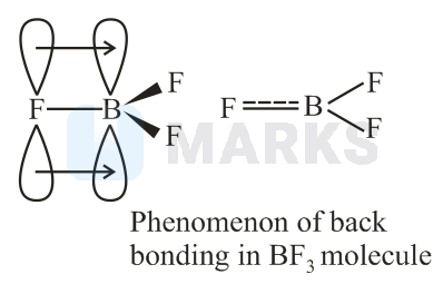 In boron trihalides, -back bonding occurs due to empty orbital of boron and filled orbitals of halogens.