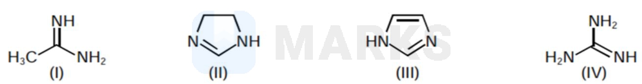 The conjugate acid is stabilized by resonance with only one group.(III) Least basic, as the LP is used in aromaticity.