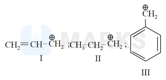 (II) (Stabilised by only + I & hyperconjugation)(2 conjugated C-H)