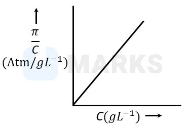 The osmotic pressure of solutions of PVC in cyclohexanone at are plotted on the graph. The molar mass of PVC is (Nearest integer)