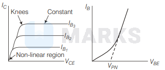 The potential difference between base and emitter changes in $I_C$ with changes in $V_{C E}$ (when $I_B=$ constant $)$