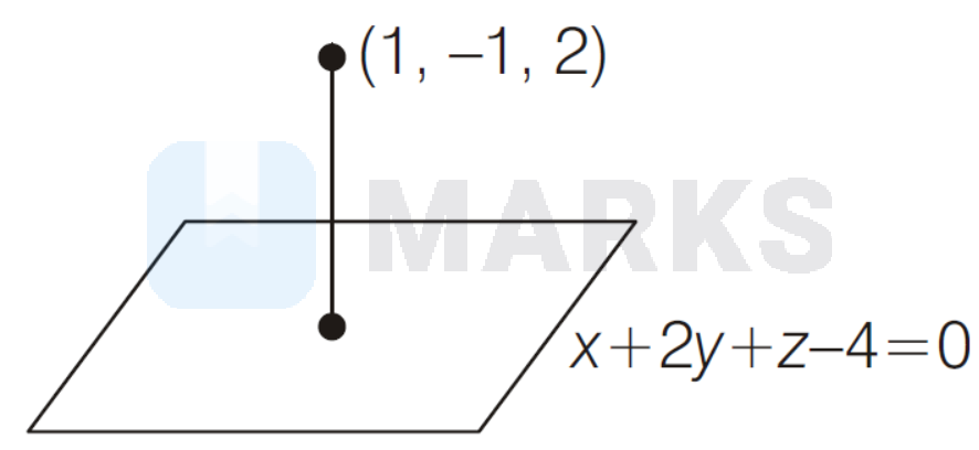 Perpendicular distance of point $\left(x_1, y_1, z_1\right)$ from the plane $a x+b y+c z+d=0$ is given by $\left|\frac{a x_1+b y_1+c z_1+d}{\sqrt{a^2+b^2+c^2}}\right|$