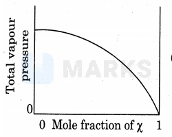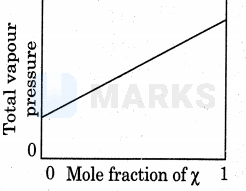 Thus, total vapour pressure of solution varies linearly with mole fraction of component .