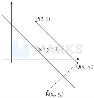 The point is shifted through a distance of units measured perpendicular to the line in the direction of decreasing ordinates, to reach at The image of with respect to te line is