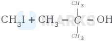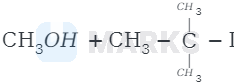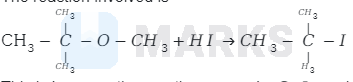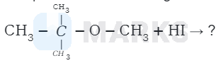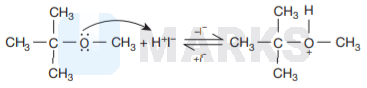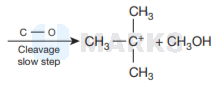 Therefore, cleavage of \( \mathrm{C}-\mathrm{O} \) bond gives a more stable carbocation \( \left[\left(\mathrm{CH}_{3}\right)_{3} \mathrm{C}^{+}\right] \)and methanol as products.