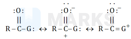 by diminishing the electrophilic character of carbonyl carbon. Since degree of delocalization is maximum in case of , therefore, the properties of