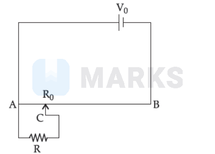 $\mathrm{V}_{\mathrm{AC}}=\frac{\mathrm{R}_{\mathrm{AC}}}{\mathrm{R}_{\mathrm{BC}}+\mathrm{R}_{\mathrm{AC}}} \times \mathrm{V}_0$