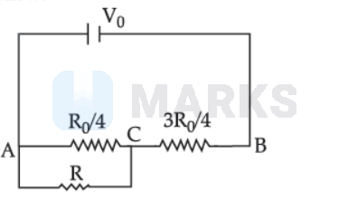 $\frac{4 \mathrm{~V}_0 R}{3 \mathrm{R}_0+16 R}$