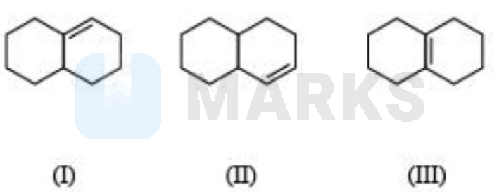 According to the question, In case of fuse ring structure, alkene which has double bond on common carbon atoms of fuse ring structure is maximum stable.
