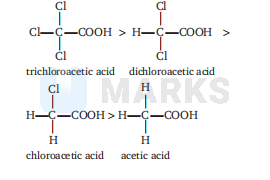 Since, chloro group has $-I$ effect. Due to which greater the number of electron withdrawing atoms (halogens), stronger will be the acid.