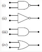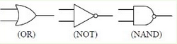 The logic symbols for OR, NOT and NAND gates are respectively