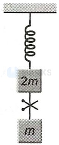 Now, the string is cut. Therefore, force is decreased on mass upward and downwards on mass 2
