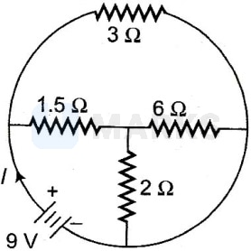 The total current supplied to the given circuit by the battery is